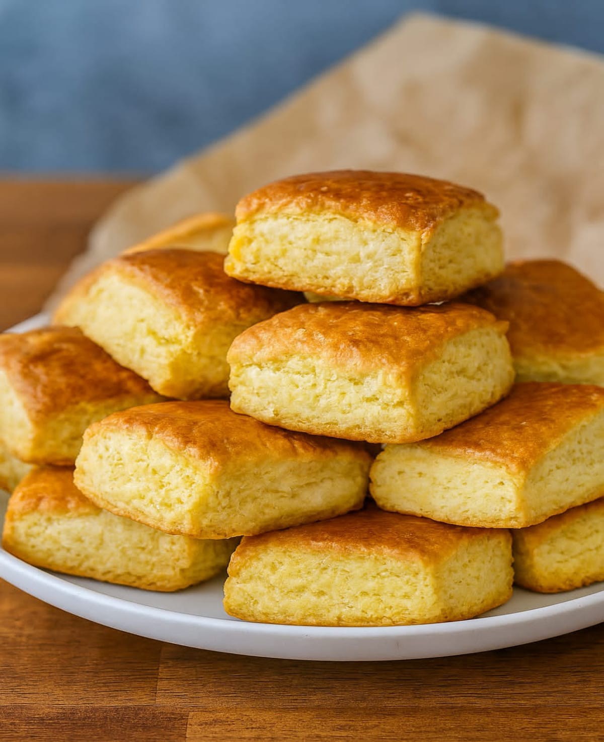 Cakes such as fresh square cookies or golden brown mini cakes
