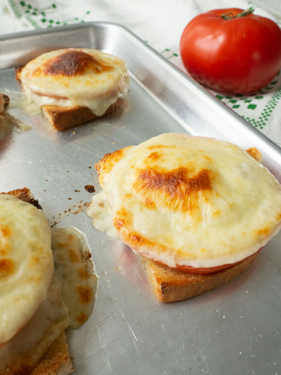 These open-faced sandwiches feature crunchy garlic toast topped with juicy tomatoes, rich provolone, and nutty Parmesan, all broiled to golden perfection. They’re a simple yet impressive lunch or light dinner.